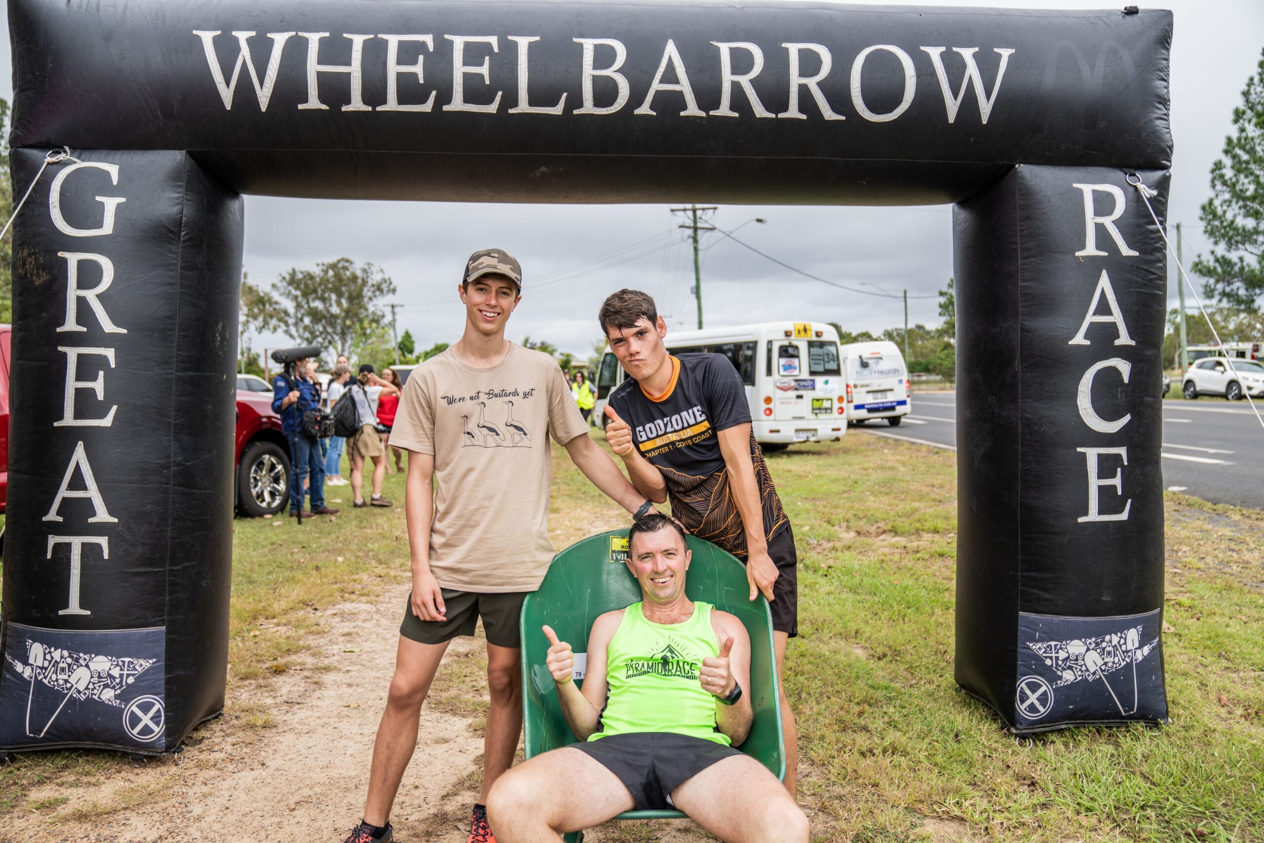 Trio team of Seth Walmsley, Emmanuel Gunton and Nathan Walmsley running 140km with a wheelbarrow to raise funds for “The Black Cockatoo Foundation”